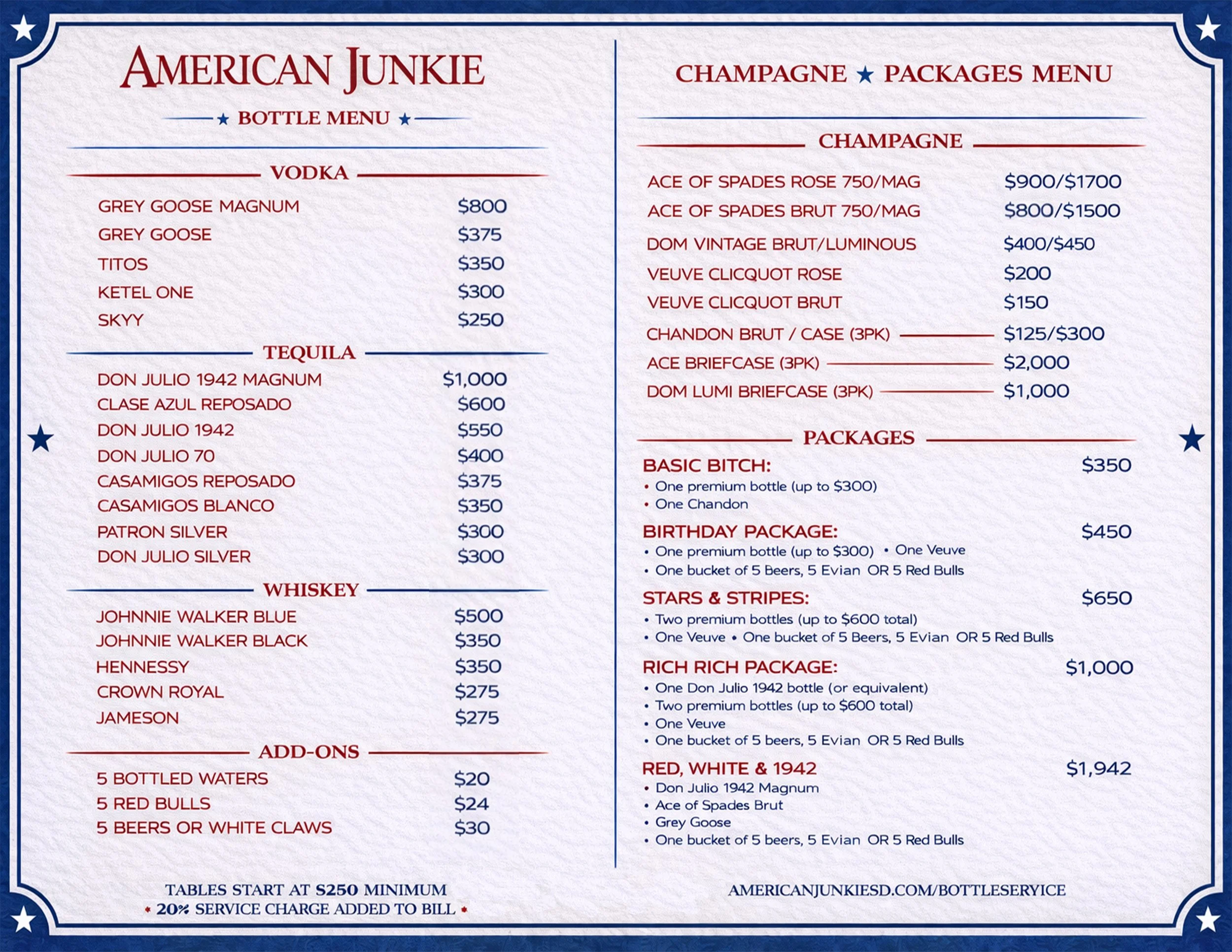 Minimums and tables are not guaranteed and may change during holidays